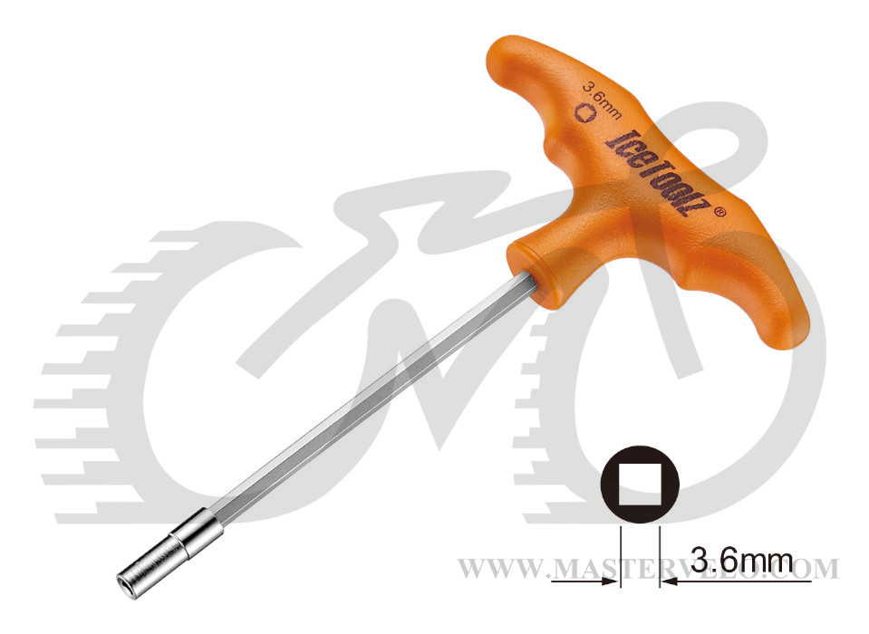Ключ ICE TOOLZ 12D7 для спиц 3.6mm с Т-образной ручкой под квадратный нипель