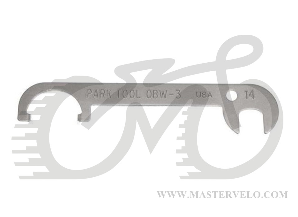Виробник: Park Tool. Спеціальний інструмент зі зміщенням, який дозволяє використовувати його в важкодоступних місцях, таких як центрування супорта гальма. OBW-3 має отвір 14 мм, а інший кінець поміщається у натяжну пружину. Виготовлено цей інструмент із інструментальної сталі, яка суттєво збільшує термін його служби.