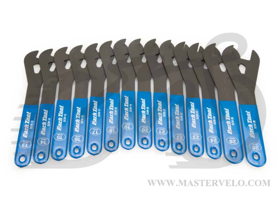 Park Tool SCW-SET.3, набір професійних ключів, призначених для роботи з конусами втулок. Виготовлено цей інструмент із спеціальної інструментальної сталі, що суттєво збільшує термін його служби. Для зручного хвату ручка має вінілове покриття.