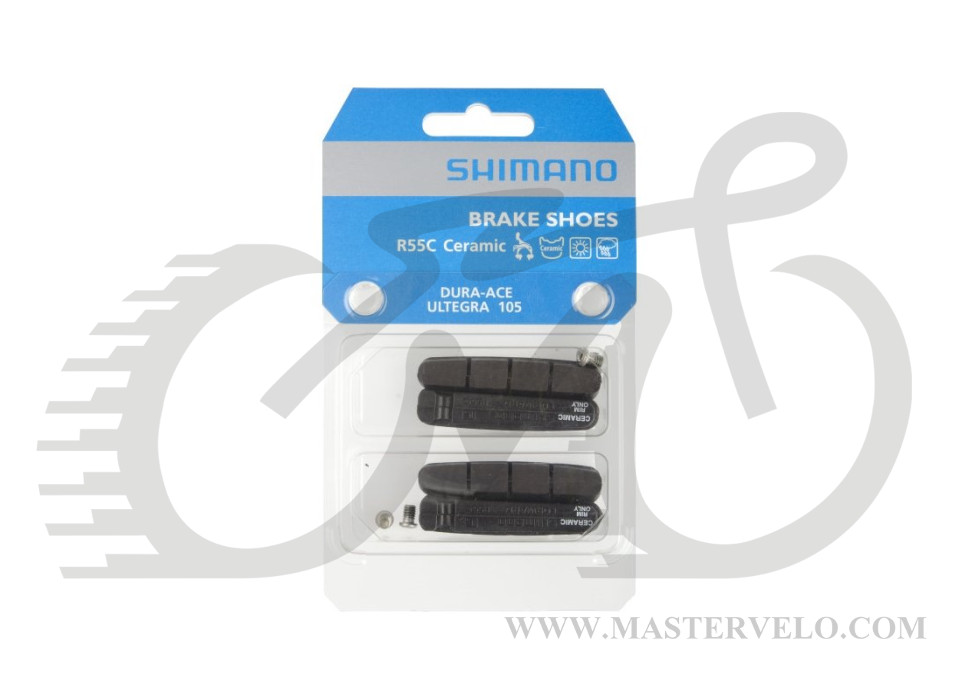Гальмівні гумки шосе R55C: високоякісні гальмівні гумки для обіду з керамічним покриттям. Висока ефективність на сухій і мокрій дорозі. Касетна фіксація. 2 пари в комплекті.