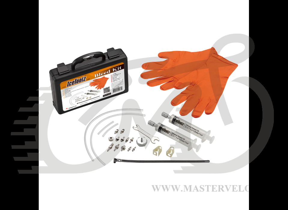 Комплект от Ice Toolz состоит из всех необходимых инструментов для прокачки гидравлических тормозов. Подходит для большинства тормозов AVID, FORMULA, HAYES, HOPE, MAGURA и SHIMANO, которые работают на минеральном масле или DOT.