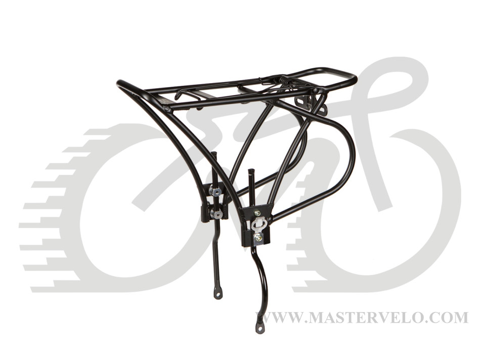 Современный багажник, который отлично справится с возложенными на него задачами. Предназначен для установки на велосипеды с 26 - 28 (29) диаметром колеса. На него можно закрепить специальную сумку, называемой « сумка-штаны» кроме того, его можно использовать для установки детского сиденья. Изготовлен из прочного алюминиевого сплава, таким образом, он не уступает стальным аналогам, но весит гораздо меньше. Внешнее покрытие багажника, хорошо сопротивляется появлению царапин.