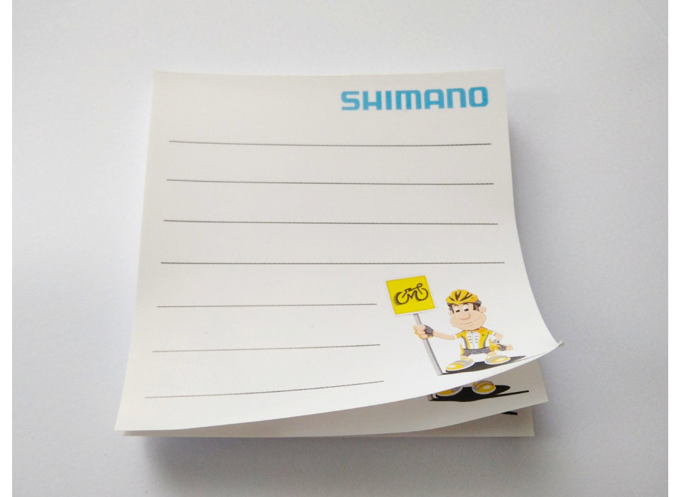 Блок белой бумаги для заметок и напоминаний компании SHIMANO. Такие листы для заметок очень пригодятся в мастерской и в повседневной жизни, а кроме того, в доме и даже путешествиях. Плотная белая бумага позволяет писать ручками, карандашами и маркерами, при этом не рвется и не режется, а надписи хорошо видно. Блок склеен на торце, поэтому его удобно использовать и без специального бокса.