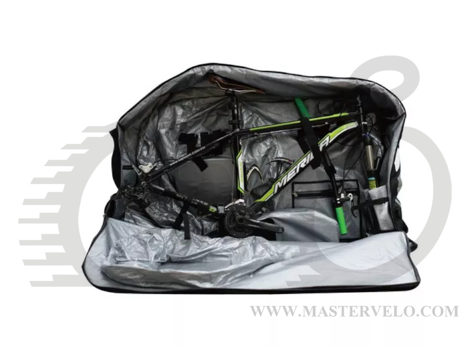 Преимущества чехла XXF BIKE TRANSPORT BAG заключаются в его вместительности и продуманной системе организации хранения деталей. Для колёс предусмотрено специальное отделение, а для педалей и других мелких деталей – карман на молнии. Рама устанавливается на жёсткое дно, надёжно фиксируется ремнями и не болтается в чехле. Вилка дополнительно обматывается уплотнителем, чтобы избежать давления на чехол и разрыва ткани. XXF BIKE TRANSPORT BAG защитит ваш велосипед от дождя, поскольку имеет прочный водонепроницаемый слой.