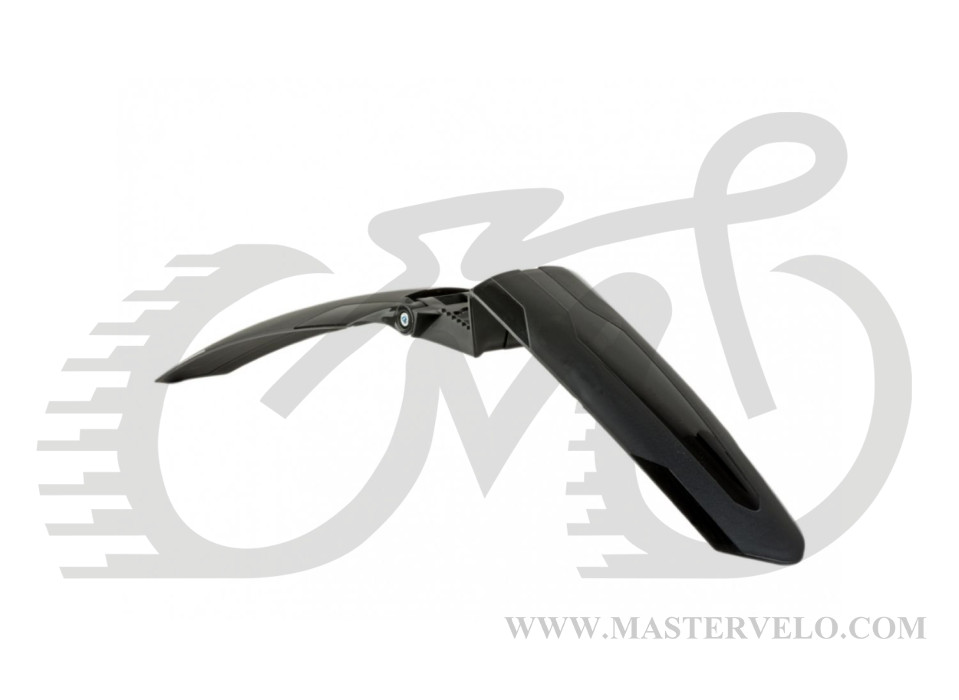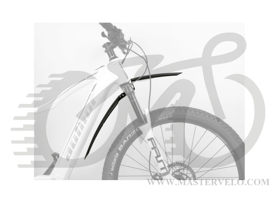 Пластиковое переднее крыло с универсальным креплением к рулевой колонке. Новая система крепления FIDLOCK оснащена магнитным разъемом, что позволяет легко и быстро устанавливать крыло, а так же устанавливать крыло как на жесткие так и амортизационные вилки (диаметр 20-35мм). Подходит для использования на всех типах велосипедов. длинна 670мм, ширина 85мм. Цвет : черный. Вес 170 грамм.