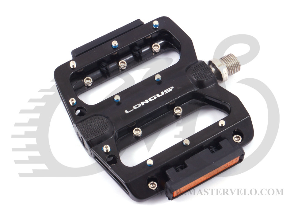 Прочные и надежные алюминиевые педали с большой контактной площадкой и сменными шипами прекрасно подойдут как для МТВ, так и для ВМХ. Стальная ось фрезерованная. В корпусе на оси стоят радиальные шариковые пром.подшипники. Цвет черный.