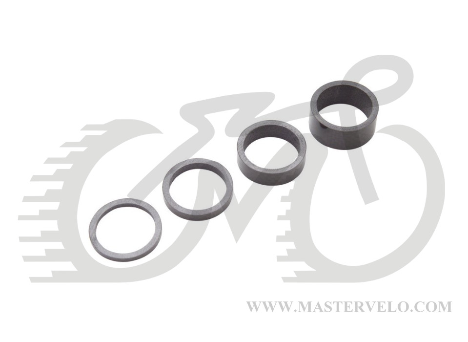 Набір високоякісних спейсерів (3 мм, 5 мм, 10 мм, 15 мм) для вилок 1 1/8 (28,6 mm). 3K вуглець, супер легкий, вага набору всього 12 гр.
