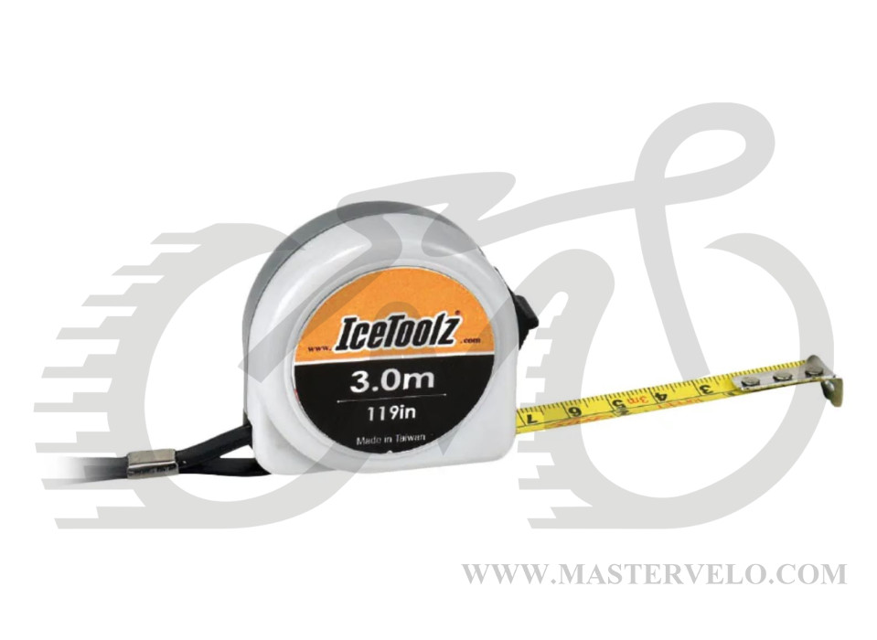 Рулетка Ice Toolz 17m4 на 3 метри з позначеннями довжини в сантиметрах і дюймах буде корисна у веломайстерні.