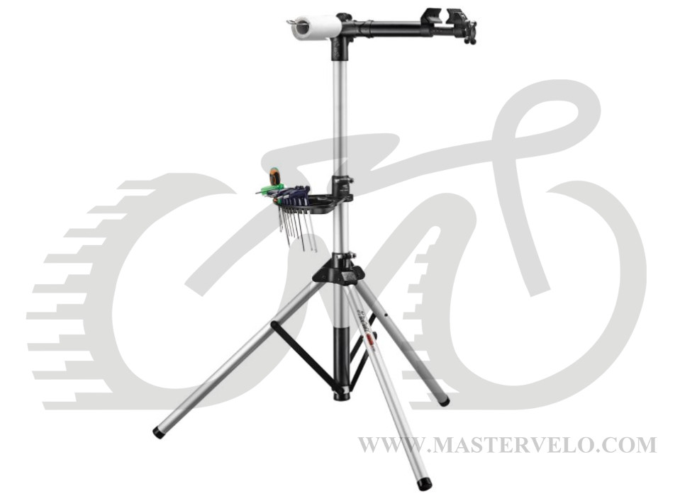За допомогою затискного механізму, що крутиться, можна закріпити труби велосипеда діаметром 25,4-55 мм. Широкі підніжки забезпечують стійкість на будь-якій поверхні, а міцні матеріали дозволяють працювати з важкими велосипедами.