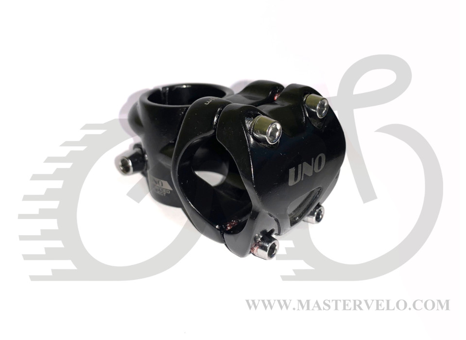 Винос Uno AS-M05 31,8 35 мм - це якісний і легкий алюмінієвий винос, виготовлений з авіаційного слава алюмінію. Має високу стабільність і низьку втому металу. У виносу чотирьох болтове кріплення керма діаметром 31,8 мм. Це дозволяє точно виставити та міцно зафіксувати кермо. Затяжка болтів для міцності спрямована одне до одного. Нанесений логотип за допомогою лазерної графіки додасть стилю та прикрасить будь-який велосипед.
