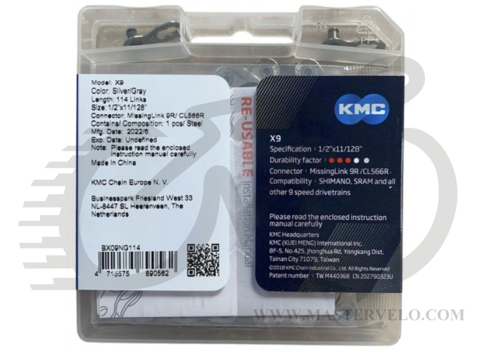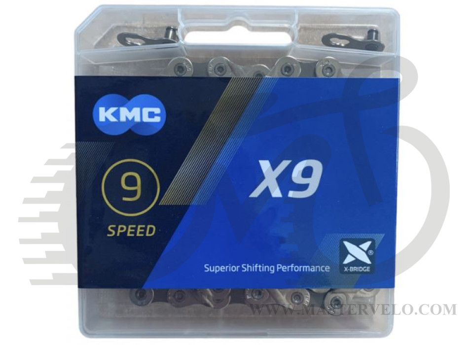 Производитель: КМС. Данная цепь относится к классу узких цепей. Может использоваться на горных или дорожных велосипедах, которые оснащены 9 скоростной трансмиссией. KMC X9 отличается специальной "X"-образной конструкцией поверхности внешней пластины, это улучшает плавность переключения передач. Имеет особую обработку поверхности звеньев, что повышает эффективность ее работы.