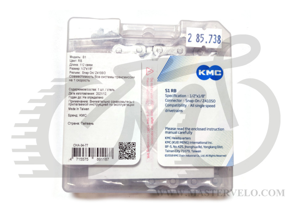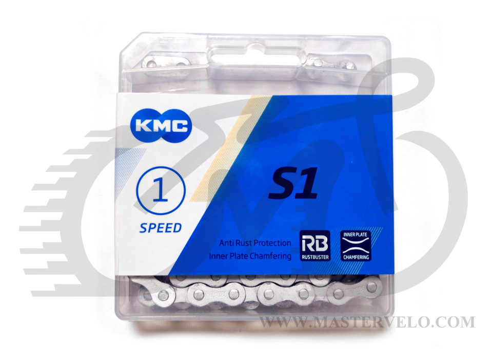 Ланцюг KMC S1 RB призначений для встановлення на велосипеди з одношвидкісними трансмісіями або з планетарною втулкою. Підходить для широких зірок. Внутрішні пластини мають фаски, які допомагають ланцюгу плавніше лягати на зуби зірки, а також зменшують ймовірність її закушування. Також цей ланцюг має спеціальне покриття, яке дуже добре захищає метал від іржі.
