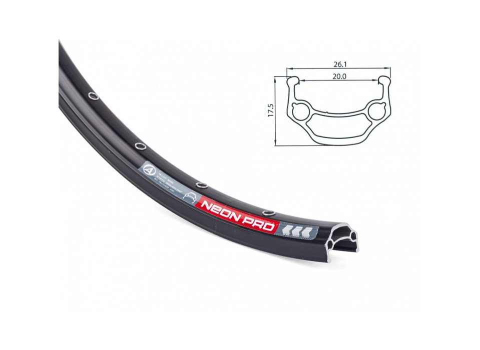 Обід ACO Neon Pro 559(26") на 32 отвори під спиці, під дискове гальмо, двостінне, пістоноване, під FV ніпель, колір: чорний, матеріал: алюміній AL6066H-T6, вага 500 грам
