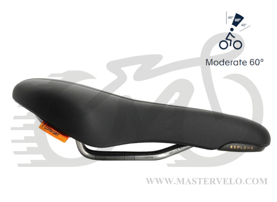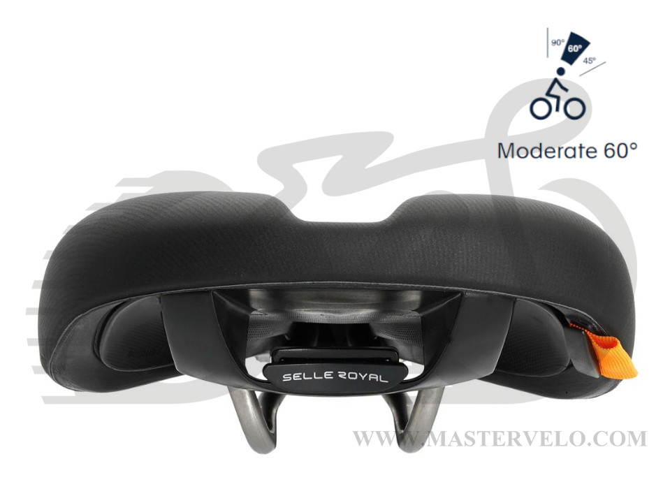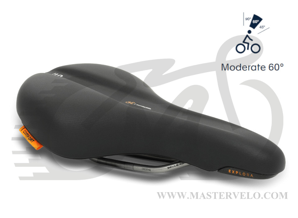 Сідло Selle Royal Explora Moderate Unisex — універсальна модель, яка підходить як жінкам, так і чоловікам, у яких відстань між сідничими кістками менше 11 см. Призначене для їзди з нахилом спини близько 60°.