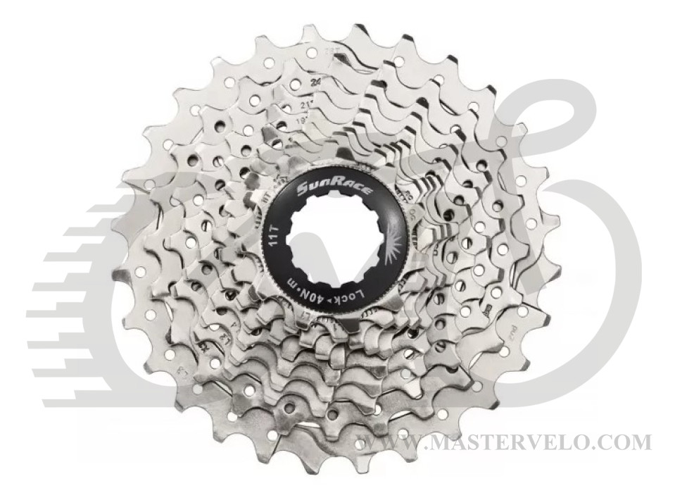 Касета SUN RACE RS для використання з шосейною трансмісією на х10 передач. Конструкція з алюмінію забезпечує тривалу експлуатацію та невелику вагу.