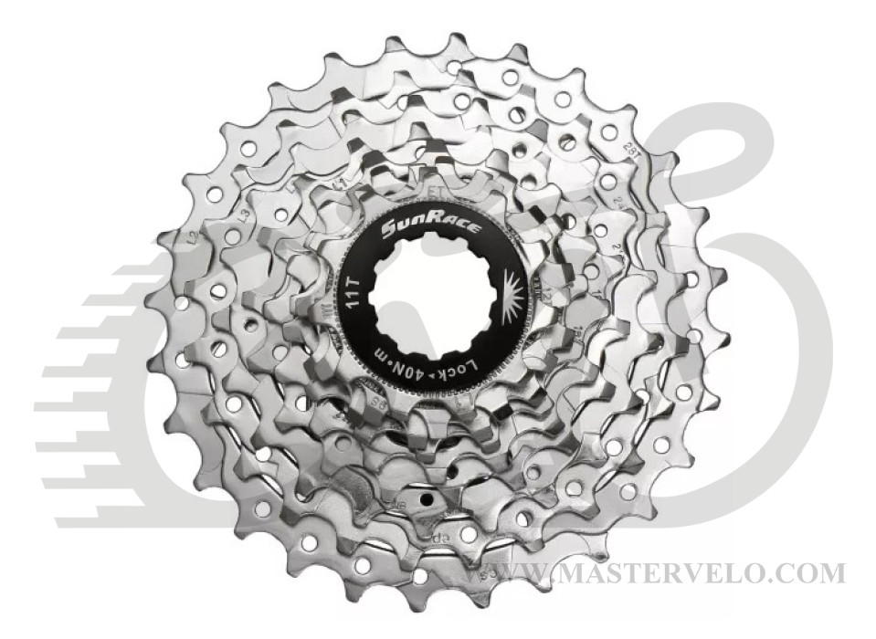 Касета любительского рівня від компанії SUN RACE має полегшений дизайн. Підходить для використання на шосейних велосипедах із заднім перемикачем на 8 передач. Сталева конструкція забезпечує хорошу міцність і довгу експлуатацію. Виконана із застосуванням технології Super Fluid Drive, яка забезпечує їй гарну роботу в сухих і вологих умовах при будь-яких навантаженнях. Зірки сумісні з будь-якими ланцюгами на 9 швидкостей. Нікельоване покриття захищає від корозії, подовжуючи касеті термін служби.
