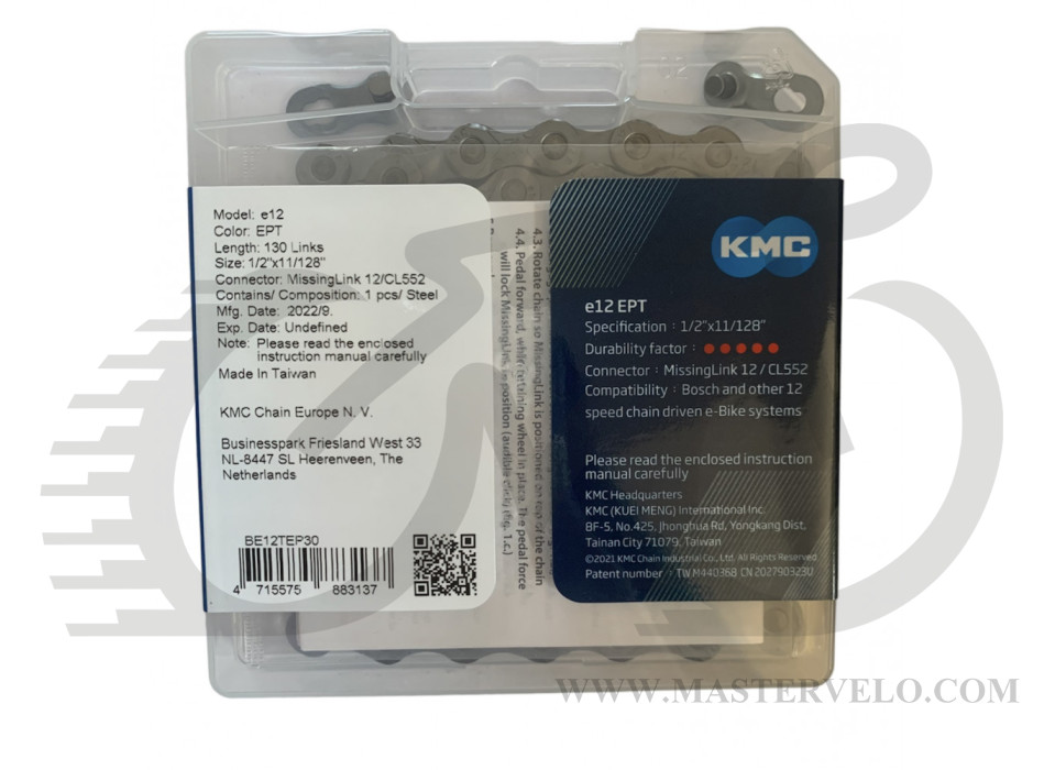 Ланцюг KMC e12 EPT 1/2 X 11/128 130 ланок з замком в боксі