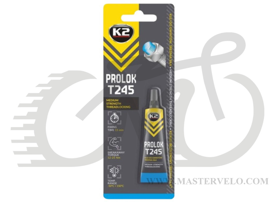 Спеціальний різьбовий герметик – фіксатор різьблення з підвищеною міцністю, призначений для використання на вузлах, схильних до впливу вібраційних та ударних навантажень, високого тиску, перепадів температур та інших несприятливих факторів. Фіксатор гарантує надійний захист від мимовільного послаблення та розгвинчування з'єднання, а також виключає ймовірність появи протікання через з'єднання. K2 PROLOK HIGH високої міцності B151 6 мл є однокомпонентним засобом і не вимагає використання активаторів чи затверджувачів – застигає самостійно протягом 15-20 хвилин. Відрізняється чудовою адгезією та тиксотропністю – не розтікається по поверхні та утримується на ній протягом усього терміну між розбираннями вузла.