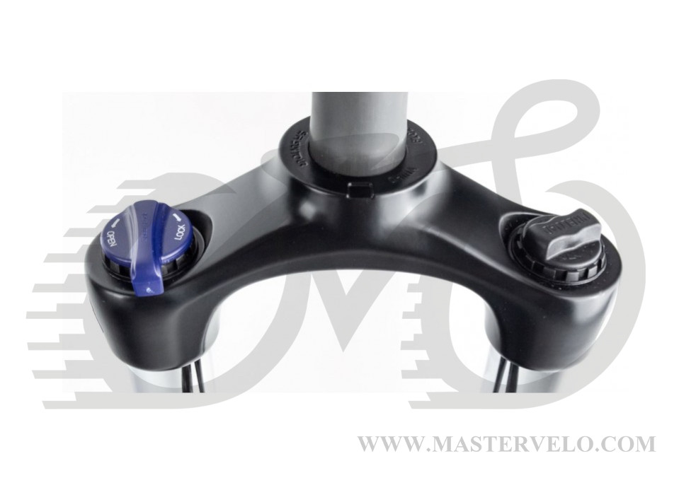 Амортизационная вилка среднего класса с механической регулировкой преднагрузки и гидравлическим картриджем блокировки. Ход вилки 100 мм,  под диск. Цвет черный.