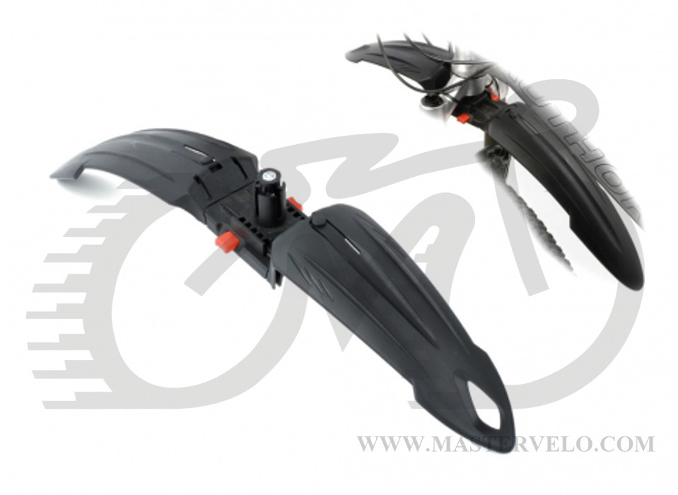 Пластиковое переднее крыло с универсальным креплением к колонкевилки. Состоит из трех элементов, что удобно при транспортировке велосипеда. Вес 170 грамм.