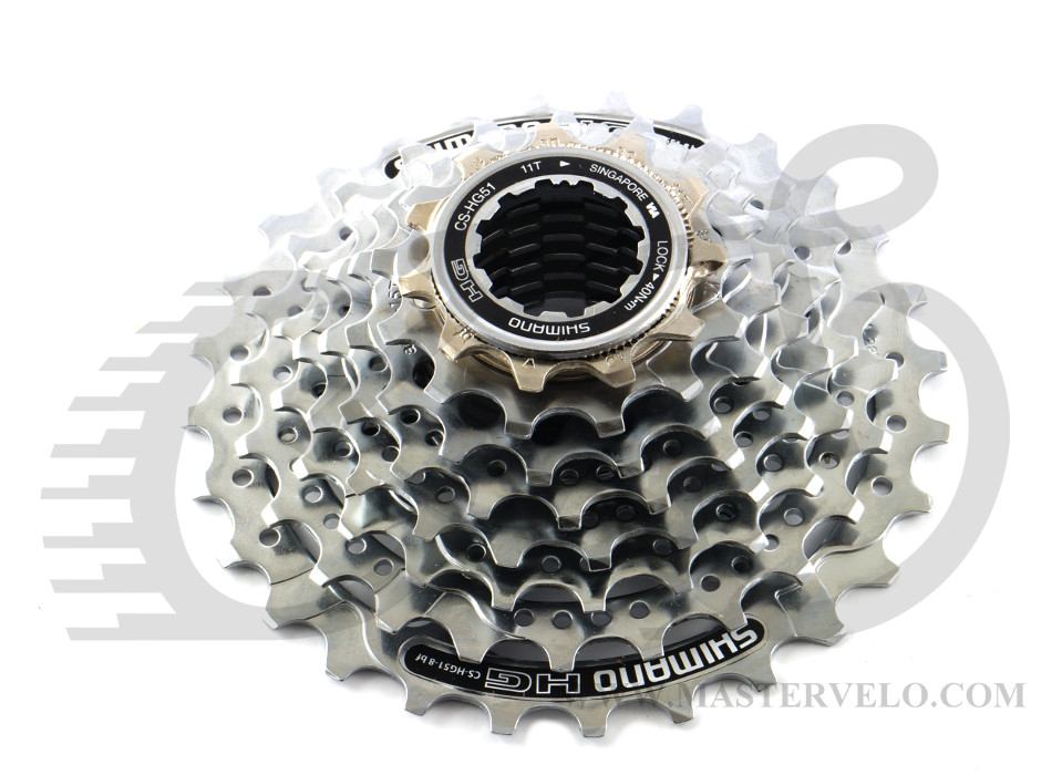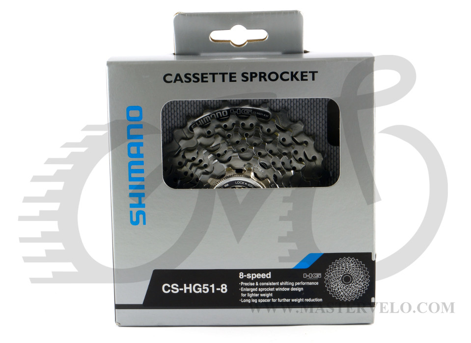 Shimano CS-HG51-8l - топовая восьмискоростная кассета, относящаяся к группе компонентов Shimano Alivio. Специальный профиль зубов Hyperglide кассеты CS-HG51 обеспечивает бесшумное, быстрое и четкое переключение в сочетании с цепями типа Shimano HG.