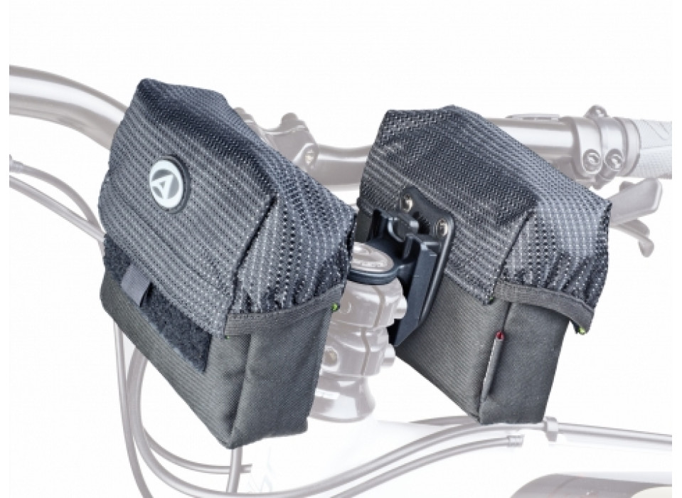 Две сумки с креплением на вынос руля быстросьемными креплениями. Сумки сверху покрыты специальным водоотталкивющим материалом с 100% защитой от влаги.