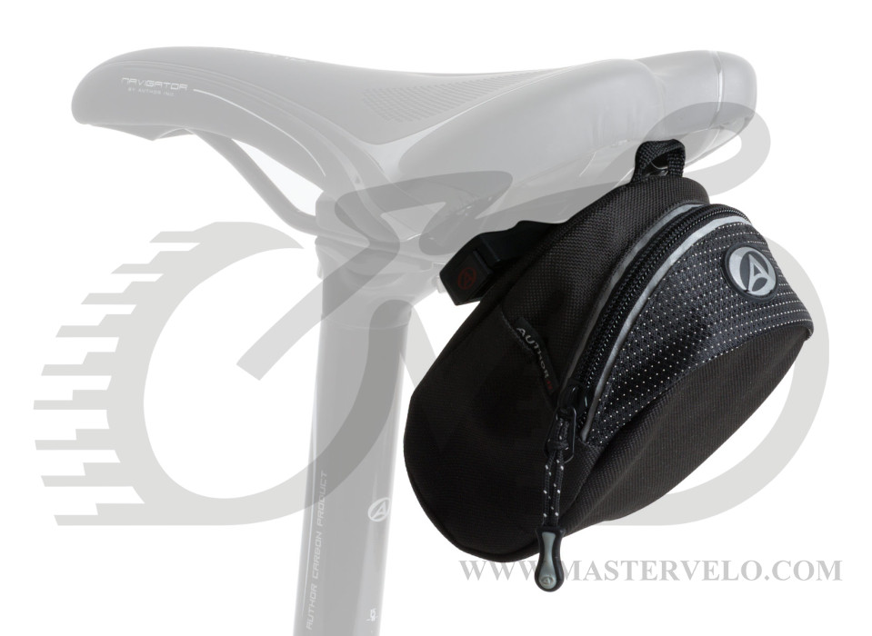 Сумка под седло, с системой быстрой фиксации Quick Fix (QF9) - просто и легко снять или закрепить под седлом, одно отделение на молнии объемом 0,9 л. , по периметру размещены две светоотражающие полосы, c петлей для крепления фонарика .