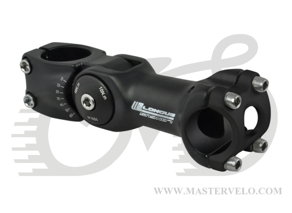 Практичный вынос с регулировкой наклона, кованый, регулировка наклона 0° до 60°. Длина 110 cm, для вилок с рулевой 28,6мм и рулей диаметром 25,4мм.