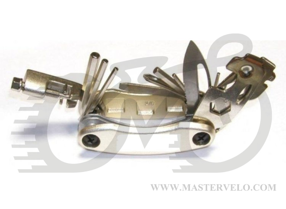 Полный набор шестигранников X17 (8/6/5/4/3/2.5/2мм) и отверток(крестообразная,плоская), с выжимкой цепи, ножом, бортировочными лопатками, спицными ключами и пр. Из устойчивого к износу сплава.
