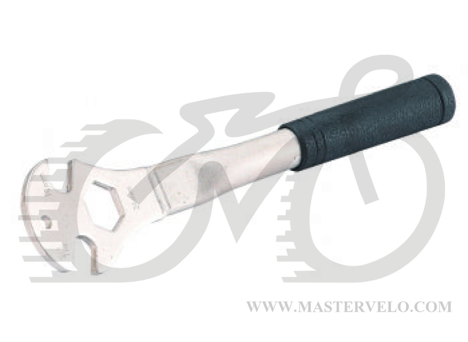 Педальный ключ BikeHand YC-163 - прочный ключ с рукояткой длиной в 285 мм и размером 14/15мм.Имеет прорезиненную ручку и специальную изогнутою форму, для более удобного доступа к сложным участкам.