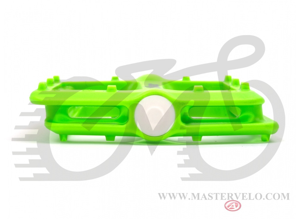 Велосипедные платформеные педали, для BMX и фристайл MTB. Размер рамки 111 x 105 x 19 mm, ось педали выполнена из Cr-Mo материала, тело рамки выполнено из облегченного нейлона.цвет: Зеленый.Вес 346 грамм.