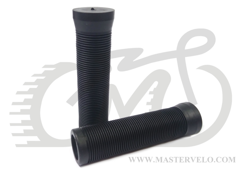 Простые и удобные грипсы, изготовлены из качественной не токсичной резины, благодаря чему не прокручиваются на руле. Рисунок ручек обеспечивает хорошее сцепление рук с рулем и хорошо гасят вибрацию. Отлично подойдут для установки на горные, дорожные и городские велосипеды.