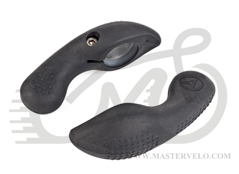 Рога ABE-500, эргономическая форма, с мягкой резиновой поверхностью, специальный внешний фиксатор, для одновременной фиксации грипсов, цвет: черные, материал: алюминий AL 6061, вес 110 грамм.