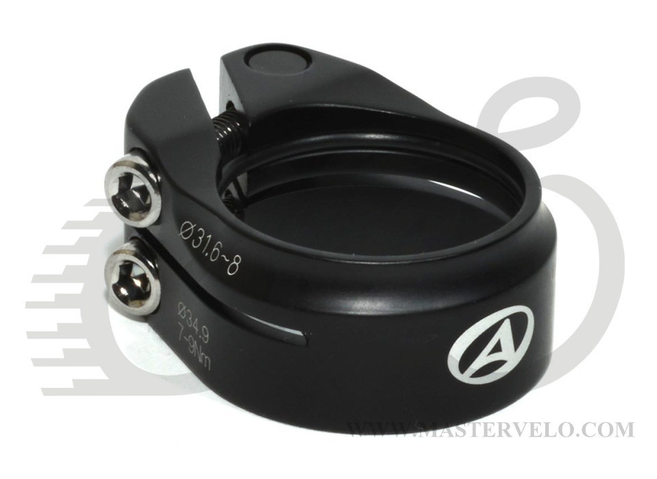 Спортивный зажим подседельного штыря ACO-315, подходит для рам c внешним размером диаметра 31,8 мм и подседельных штырей диаметром 27,2 мм для супер жесткой фиксации подседельного штыряс помощью 2-х болтовых затяжек, цвет - черный, с лазерным лого AUTHOR.