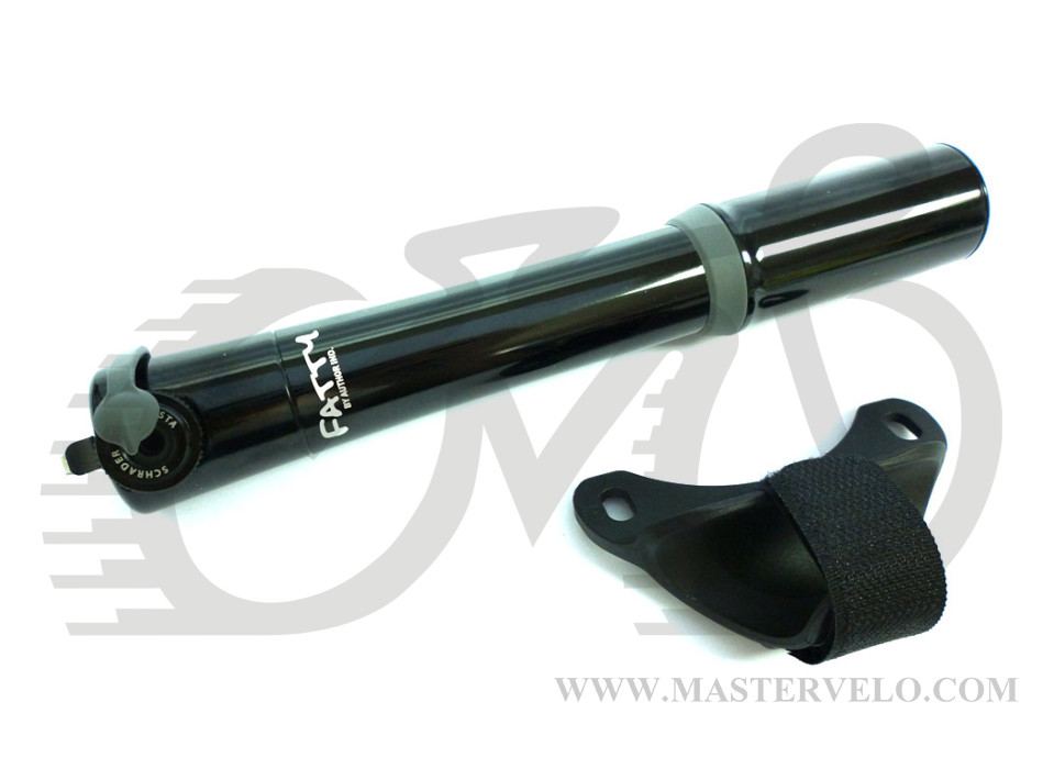 Насос мини ручной AAP Fatty телескопический, с приспосабливаемой головкой под все виды AV/FV/DV вентилей с клапаном предохраняющим от загрязнения, черный, в комплекте крепление к раме, корпус:алюм. AL6061, диаметр насоса 28 мм, длина 180 мм, вес 125 гр.