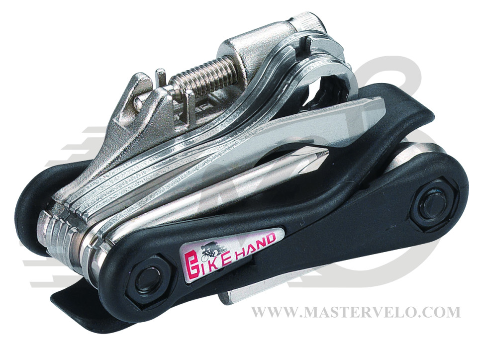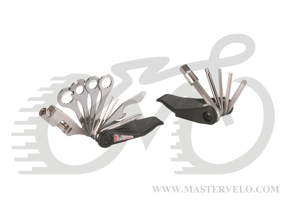 Складной набор инструментов для ремонта велосипеда из высококачественной стали. Комплект включает шестигранники 2/2.5/3/4/5/6/8мм, а также 2 отвертки (на крест и на шпиц) и накидные ключи по 8/9/10/12 мм. Большинство регулировок и настроек велосипеда осуществляется при помощи шестигранников, а потому эти инструменты незаменимы для обслуживания байка дома или в длительной поездке.