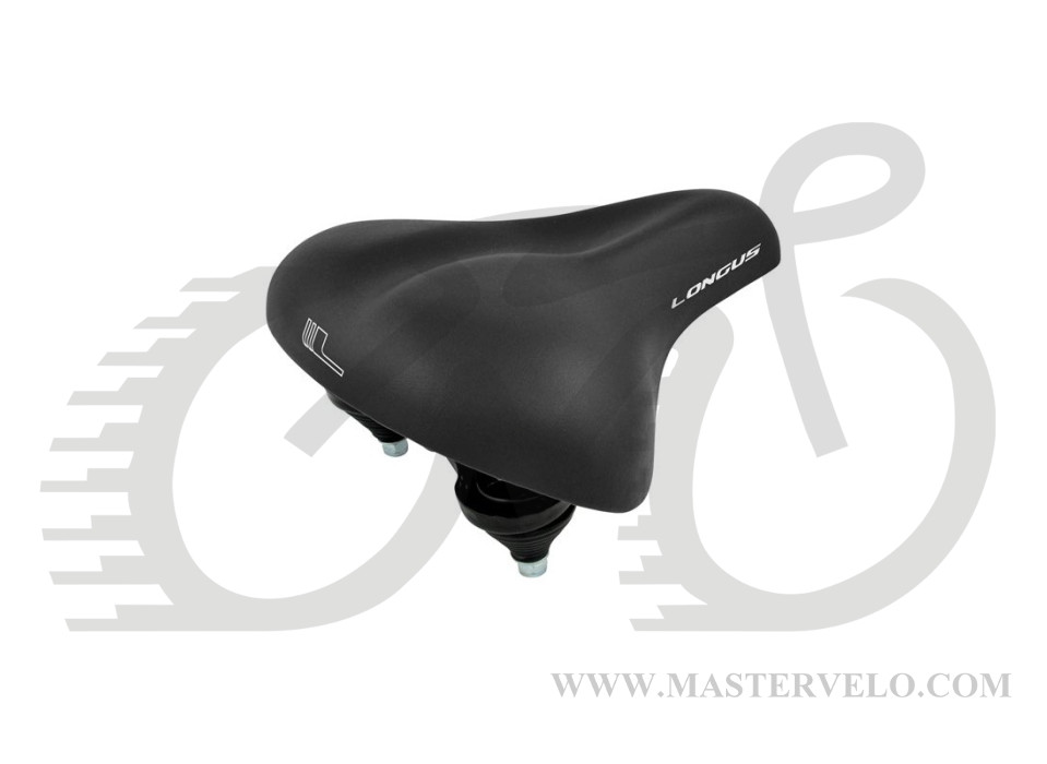 Широке сідло підвищеного комфорту з дуже м'яким наповнювачем, вінілове покриття, додаткові пружини, сталева рамка і замок на штир.