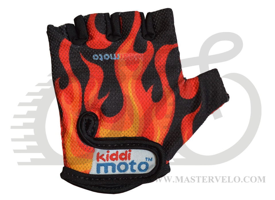 Перчатки детск Kiddimoto чёрные с языками пламени, М