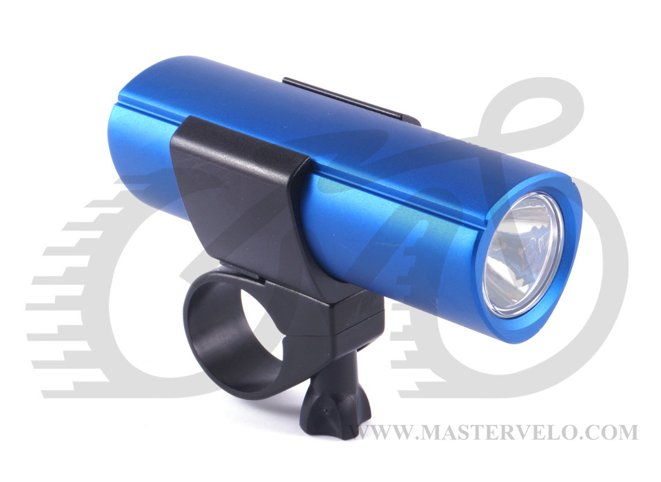 Мощная передняя фара. Оборудована одним ярким светодиодом, который работает в 3-х режимах (яркий свет, приглушенный, стробоскоп). Крепление на руль можно установить без инструментов. Также есть шнурок для подвешивания на шею.
