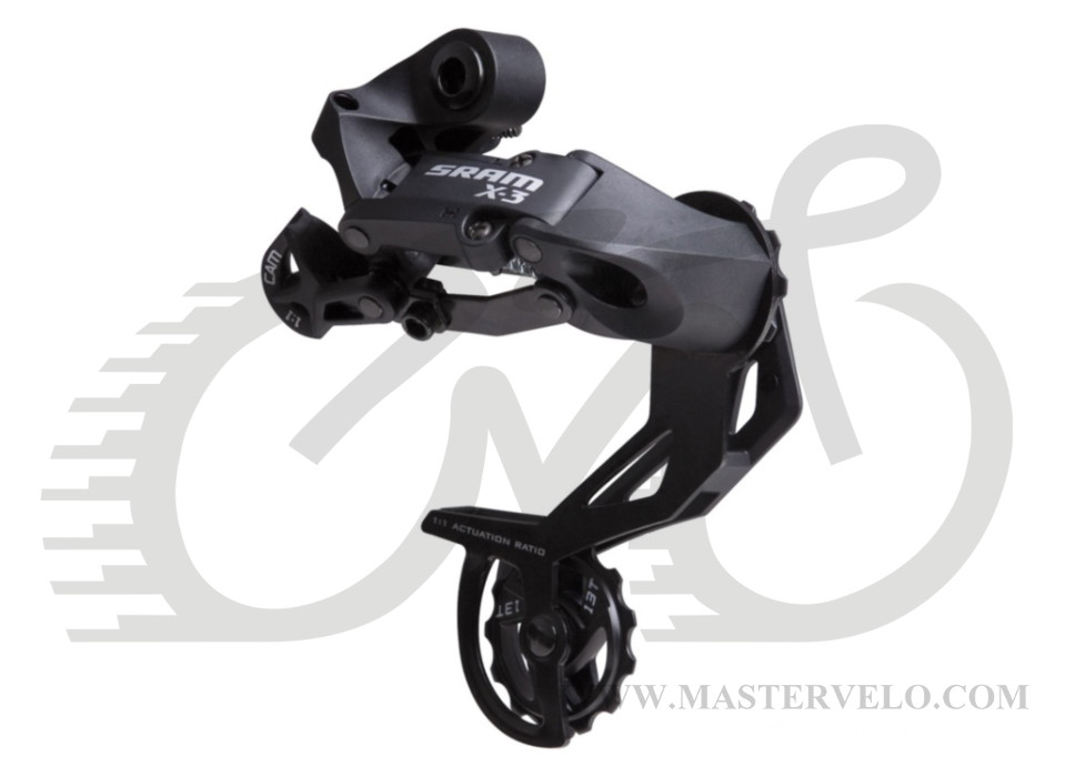 Задний переключатель Sram X-3 можно отнести к среднему классу велокомпонентов. Велопереключатель работает с 7/8 скоростной системой. Технология 1:1 Actuation Ratio, это когда при переключении монеткой задний переключатель перемешается на 1мм, таким образом достигается; стабильная работа, четкое и плавное переключение с минимальной нагрузкой на рычаг манетки. Корпуса велопереключателя Sram x-3 изготовлен из прочного пластика, нижний линк пластик, направляющия лапка также изготовлена из пластика, ролики сделаны из пластик и являются не съемными.