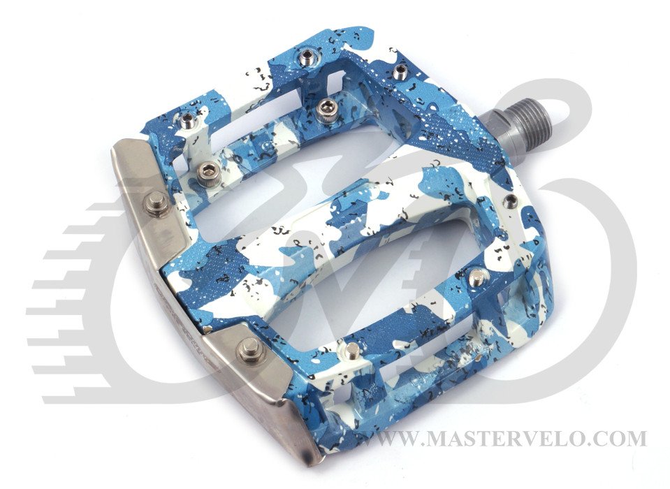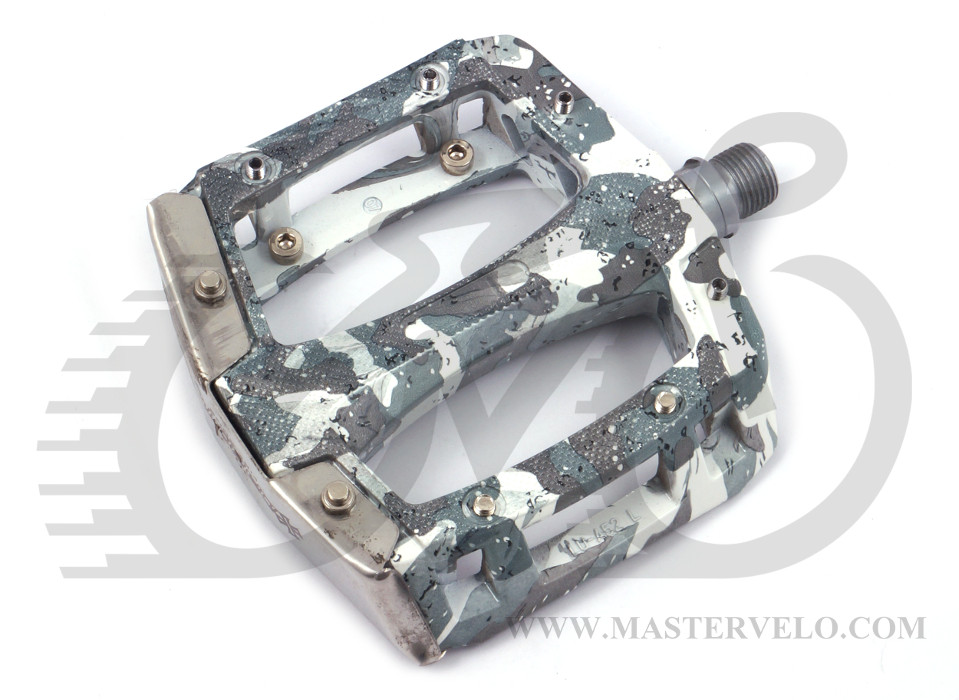 Агрессивная платформа, которая рассчитана на серьезные нагрузки. Корпус отлит из алюминиевого сплава с частичной фрезерованием некоторых узлов. Хром-молибденовая ось делает эти педали более долговечными и надежными. Педали укомплектованы радиальными промышленными подшипниками. Шипы сменные.