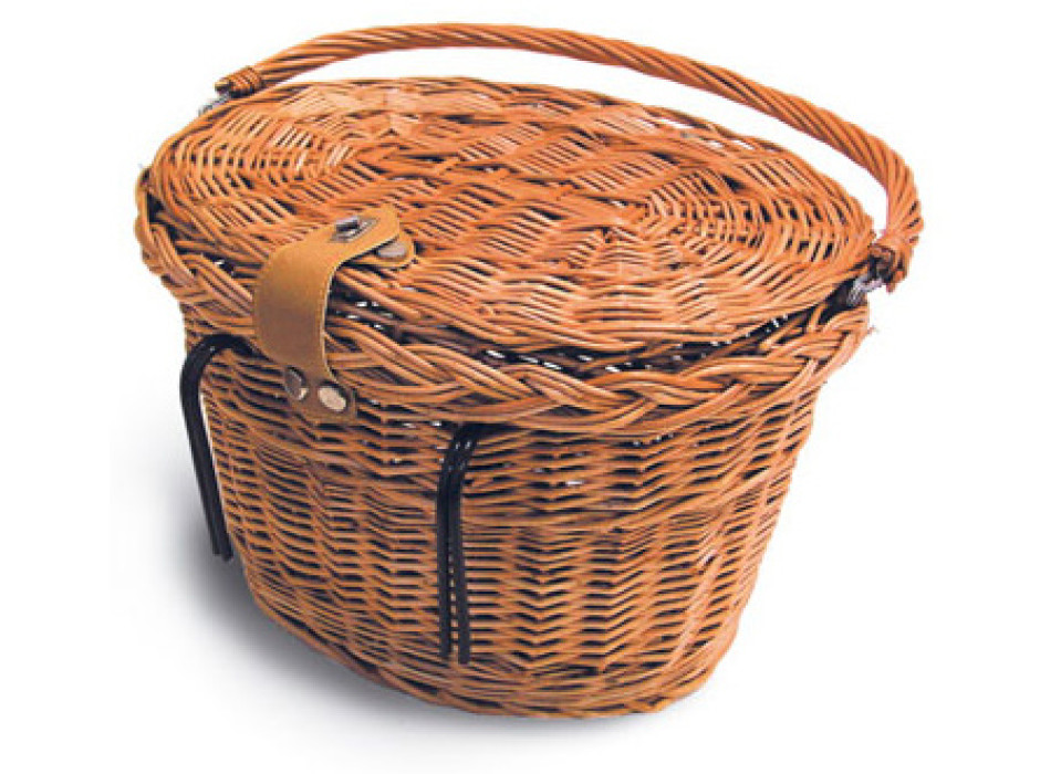 Корзина плетеная с крышкой на руль, отлично подойдет для перевозки малогабаритных предметов, прекрасно смотрится на городских моделях велосипедов.