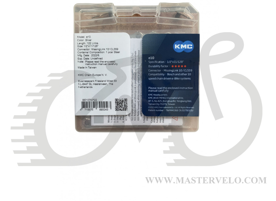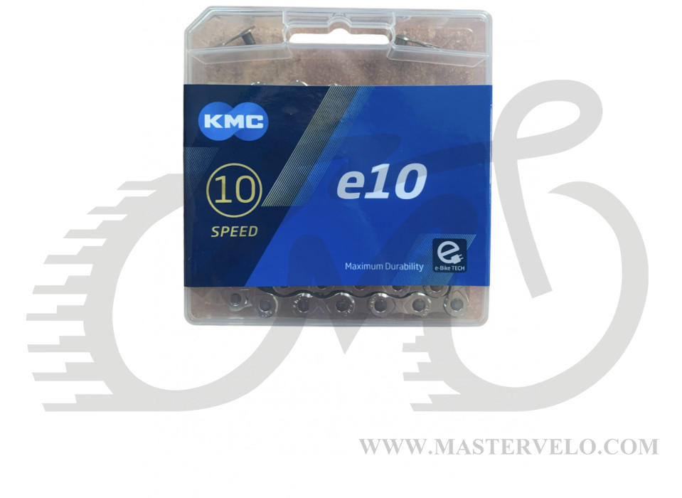 Цепь KMC e10 Silver 1/2 X 11/128 122 звена с замком в боксе