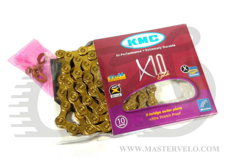 Цепь KMC X10 ультралегкая цепь для гоночных байков с 10-ти скоростной трансмиссией. Совместимая с Shimano и Compagnolo.