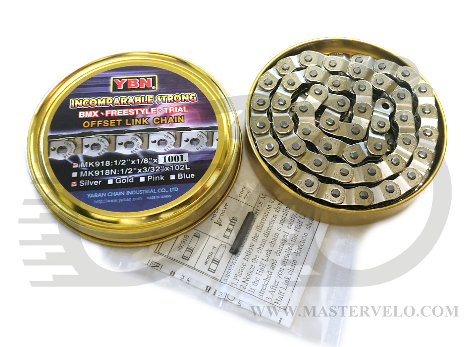 Цепь ВМХ YBN MK918, 1/2x1/8, 100 зв,сереб., соединительный пин, в метал. упаковке