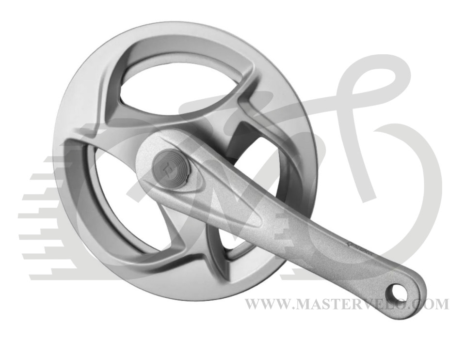 Комплект шатунів PRO-L42PP призначений для встановлення на міські та складні велосипеди, які оснащені кареткою "під квадрат" та не мають переднього перемикача швидкостей. Зірка виконана зі сталі та має подвійний пластиковий захист, який убереже одяг від забруднення, а ланцюг від спадання. Шатуни виготовлені із легкого, але міцного кованого алюмінію. Для захисту від корозії застосовано анодування.