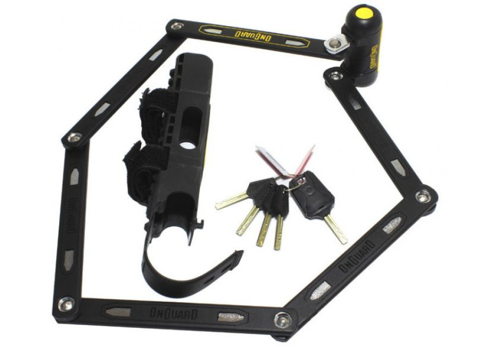 Производитель: ONGUARD. Сегментный, складной замок Revolver Link Plate, это прекрасная комбинация надежности U-образных замков и компактности тросов. Стальные пластины выполнены из закаленной стали. Цилиндр замка обеспечивает надежную защиту против " интеллектуальных " методов вскрытия. Механизм запирания имеет систему Х4Р ( фиксация при помощи четырех стальных штырей ) Подобная система хорошо выдерживает нагрузку, если замок пытаются разломать.