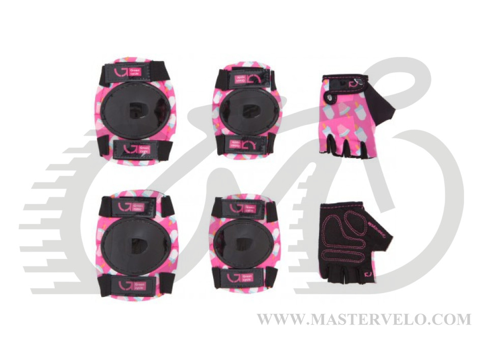 Защита для детей Green Cycle IceCream Pink наколенники, налокотники, перчатки, черные