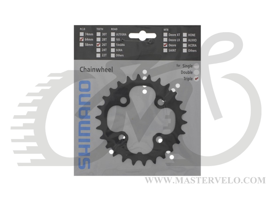 Звезда шатунов Shimano FC-M590 DEORE 26зуб. черный, 9-быстр. 64мм (Y1LD26000)