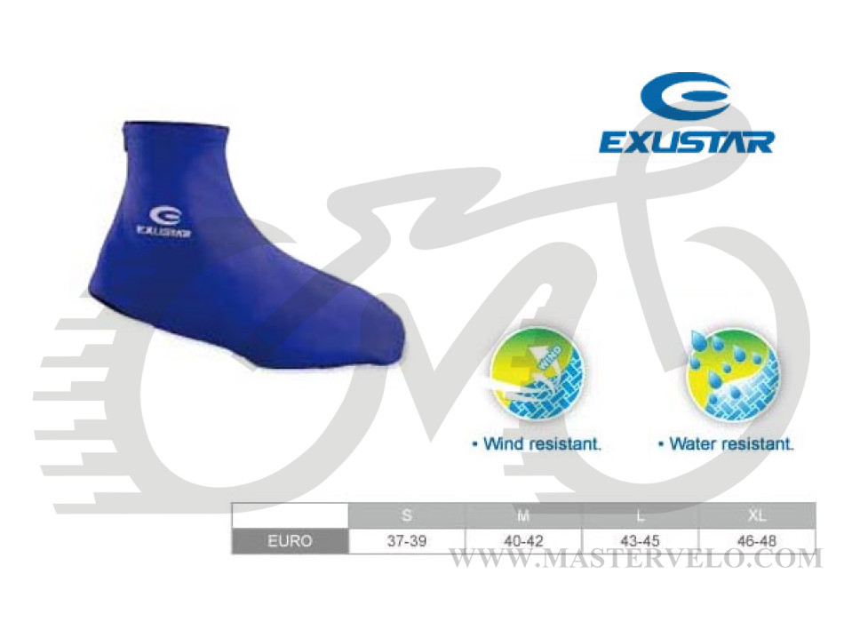 Велосипедные бахилы Exustar E-SC006 изготовлены из лайкры используются с велообувью в период межсезонья для зажиты ступней от ветра и влаги. Для удобства молния расположена со стороны пятки, нанесены светоотражающие надписи. Для использования велосипедных бахил с контактной обувью предусмотрено отверстие в подошве